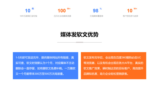 軟文推廣軟文發(fā)布,軟文營銷媒體發(fā)稿,權(quán)威背書效率高排名好品效合一,多數(shù)用戶發(fā)布后,主動選擇繼續(xù)投放!現(xiàn)在開戶即送萬元營銷大禮包【國家高新技術(shù)企業(yè),中國廣告協(xié)會會員單位,紅楓葉傳媒】